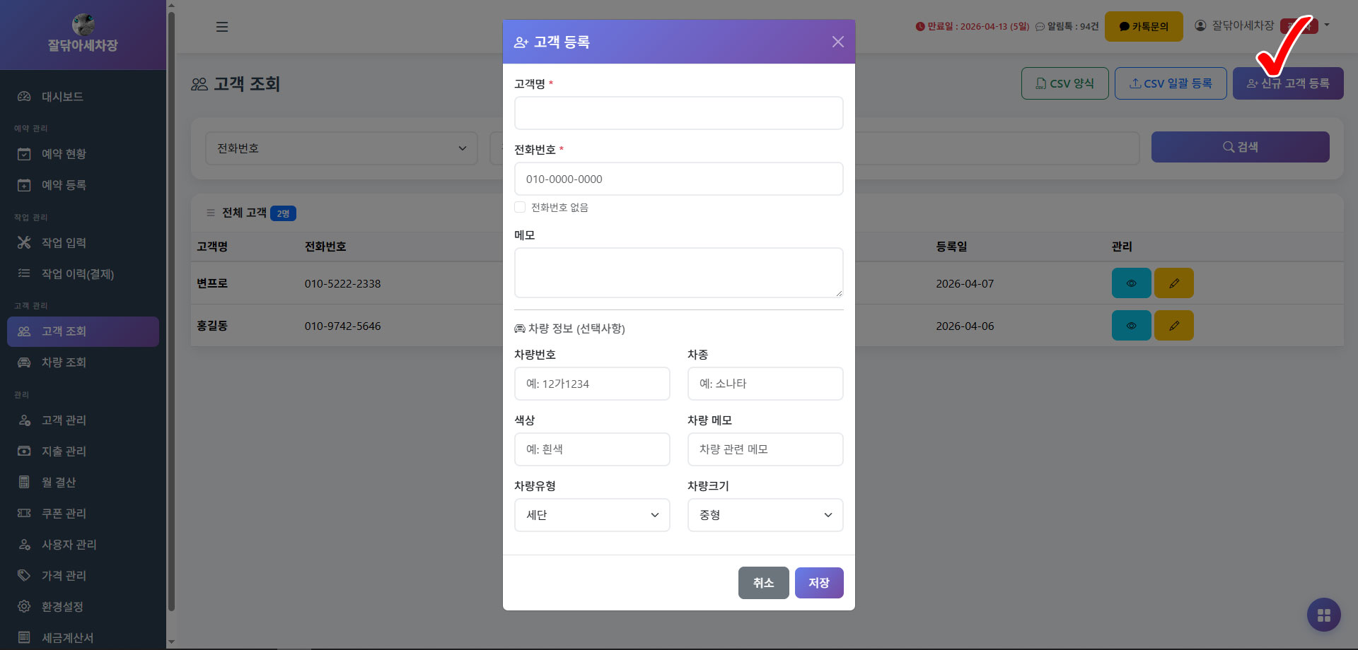 세차장 고객관리 프로그램